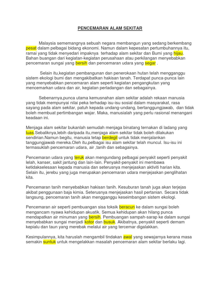 Related : Contoh Karangan Punca Pencemaran Alam Sekitar / Konsep dan takrifan pencemaran alam sekitar yang dikaji..